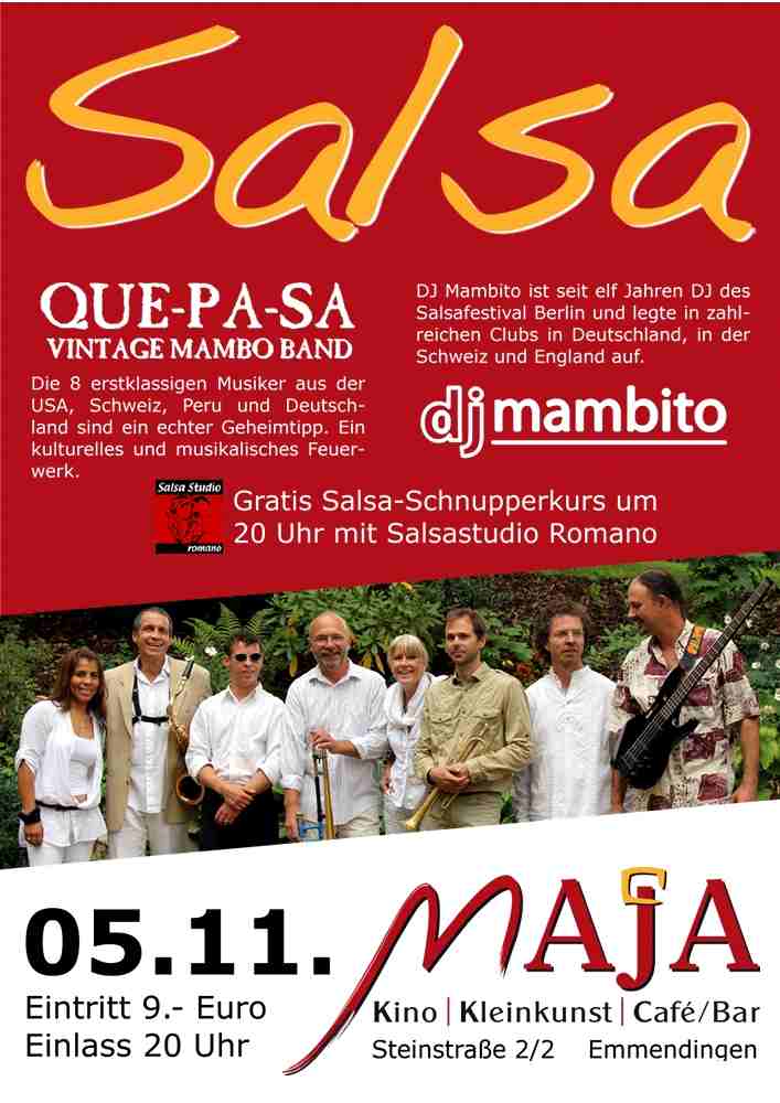 in der Maja Maja Emmendingen, QUE-PA-SA mit DJ Mambito 5.11.11 | Mehr |